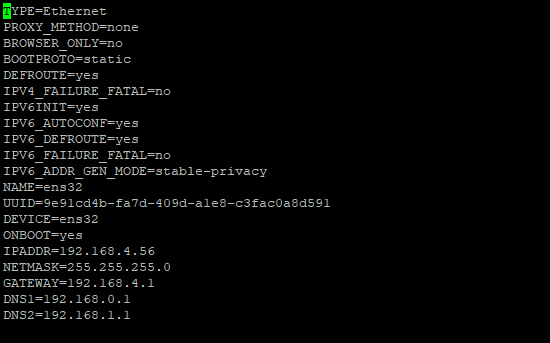 1)命令:vi /etc/sysconfig/network-scripts/ifcfg-ens32,打开配置文件编辑配置。