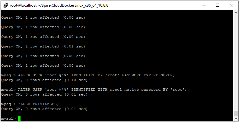 ALTER USER 'root'@'%' IDENTIFIED BY 'root' PASSWORD EXPIRE NEVER;